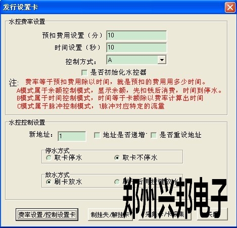 是否初始化水控器,該復(fù)選框中對管理卡來說的。如果在設(shè)置管理卡的時候選中該復(fù)選框,使用管理卡設(shè)置預(yù)扣費(fèi)率的同時也初始化了水控機(jī)上的所有消費(fèi)數(shù)據(jù)。