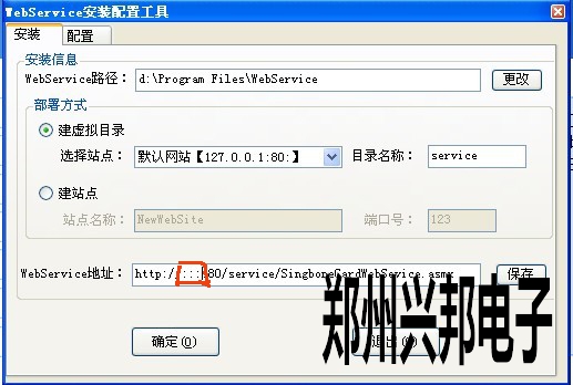 2. 如紅色標注處,正常的應(yīng)該顯示本機電腦的IP地址,但是此時無法獲取IP地址,80端口被占用,在此處手動輸入本機IP地址,點擊保存,復制WebService地址,配置完成后退出。