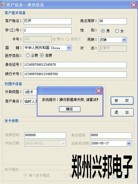 一卡通綜合管理平臺(tái)修改卡信息時(shí)出現(xiàn)如下提示