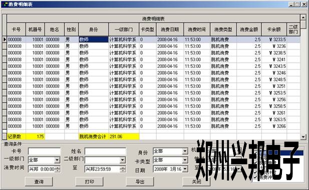 1) 消費明細表:根據相應條件查看卡的消費明細,表里顯示了卡的一些基本信息和消費的時間,金額和卡上還有的余額。