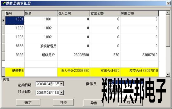 因為軟件涉及到金額,所以操作的時候就要求我們謹慎,如果出現問題,就要責任到人,操作員流水匯總表可以查詢不同的時間由哪個操作員做的操作。