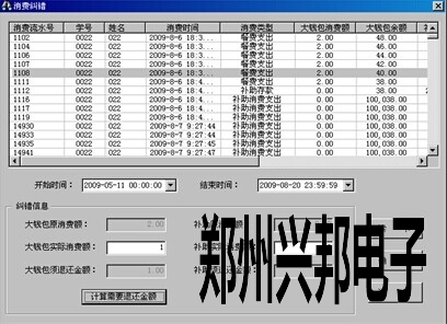Ø 單擊【讀卡】,在記錄表中單擊選擇消費錯誤的那條記錄,輸入應該消費扣除的實際大錢包及補助金額,