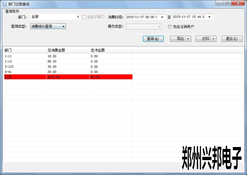 前提是要規(guī)劃好人員部門,對人員部門進(jìn)行分類。查詢類型有三種:消費(fèi)統(tǒng)計(jì)查詢,消費(fèi)明細(xì)查詢,記錄明細(xì)查詢。