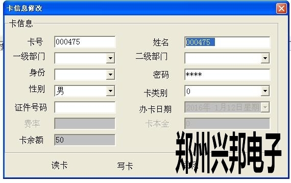 2、先把卡放IC卡讀卡器上,讀卡,出現卡信息后,直接修改卡信息。(注:卡號是不能修改的。卡號只有在發行的時候來修改,一但發行就不能修改了。)