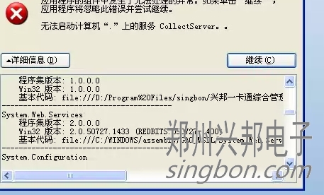 互聯(lián)網(wǎng)一卡通食堂售飯機(jī)的軟件,在操作啟動(dòng)采集時(shí)提示無(wú)法啟動(dòng)計(jì)算機(jī)上的CollectServer