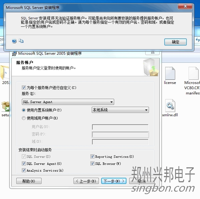 安裝SQL Server2005時提示安裝程序無法驗證服務帳戶